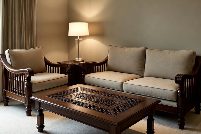 Saharanpur Carved Wooden Bed,Chairs, sofa set,Swing Jhula – Luxury Teak & Cane Design by SMMUP, Uttar Pradesh